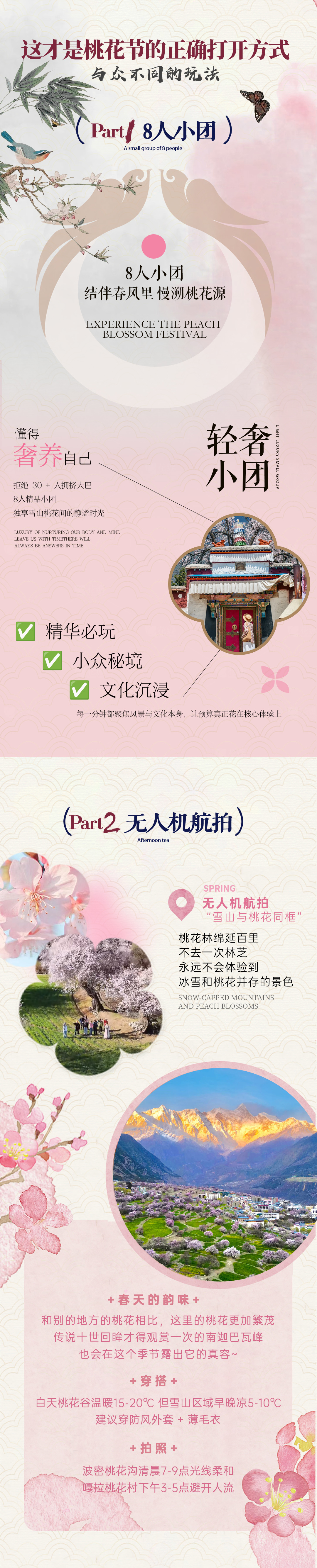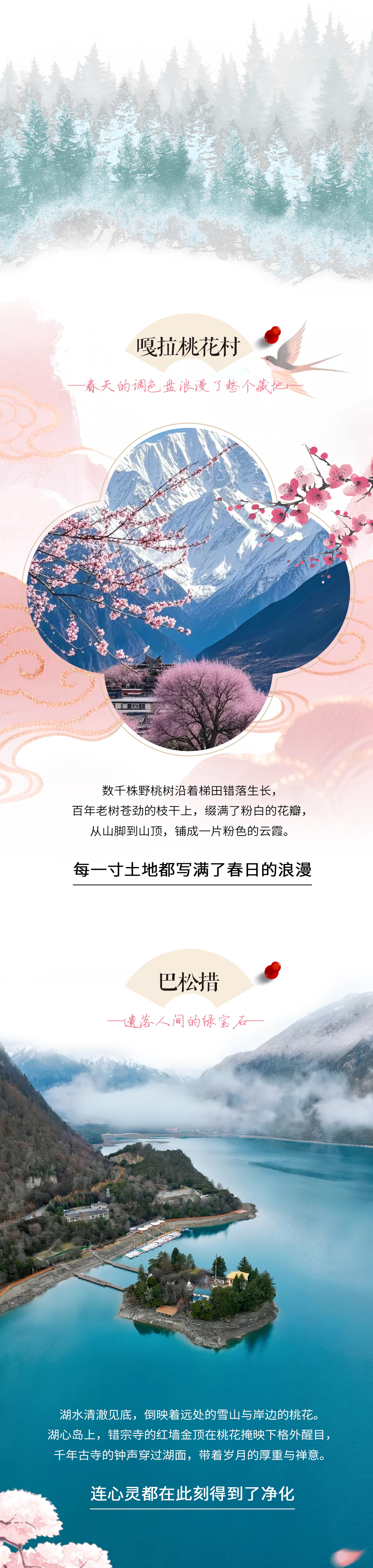 随后驱车前往嘎拉桃花村,这里三月桃花盛开,漫山遍野。桃园依山傍水,极目远眺,眼底尽是尼洋河风光。水中倒映着对面青山,远处雪山分外妖娆。