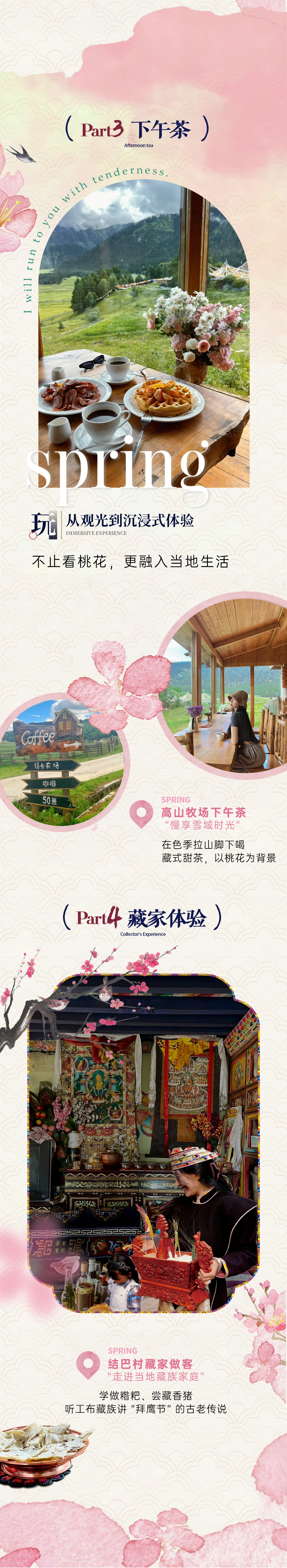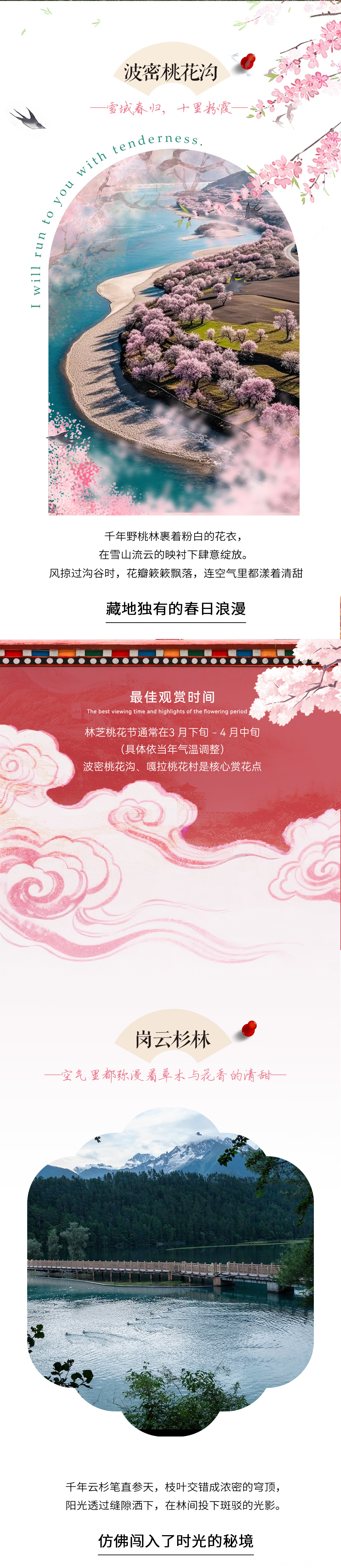 鲁朗用完早餐后前往波密桃花沟,这里的桃树不是人工栽植,都是野生的。几百年来,藏乡人民从没有人破坏和砍伐,这与藏族人喜爱万物生灵有很大的关系。云带挂山腰,雪山影河谷,田地绿色浓,农舍错落间,牛马悠然行,桃花遍地现。这不是文人笔下的仙境,而是人间林芝四月天。