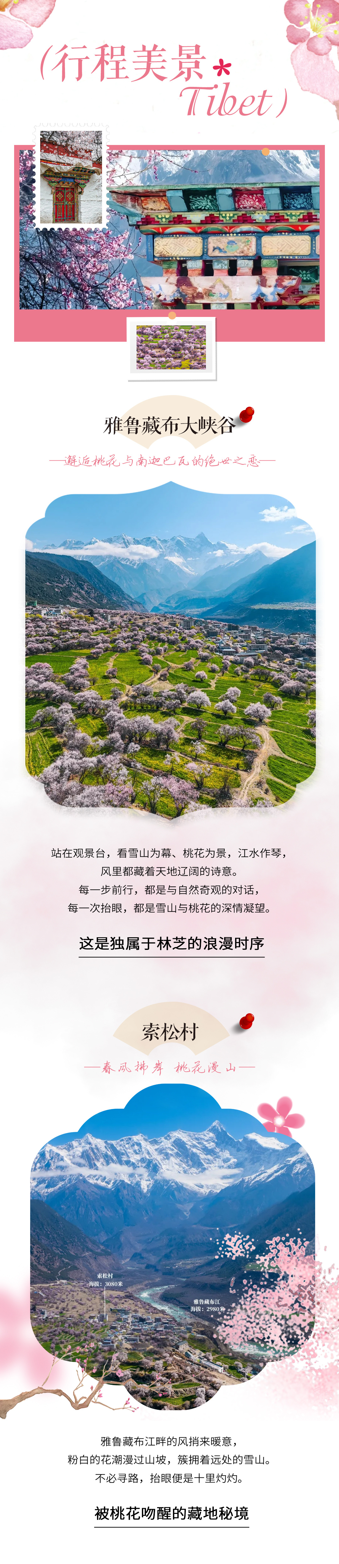 雅鲁藏布大峡谷是3.4月赏桃花的首选之地。两岸的山坡上,桃林与麦田交相辉映;三面环山的桃花,江水倾泻而下,涧边长满了野生桃树,只可远观不可近玩。