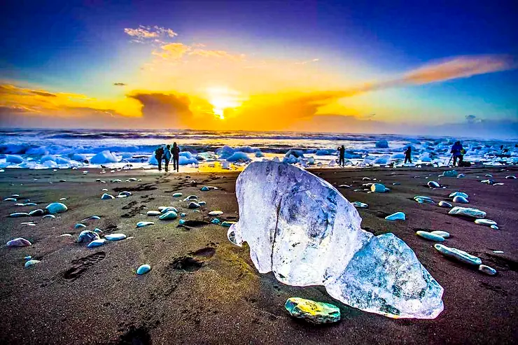 冰河湖杰古沙龙湖的冰块晶莹剔透