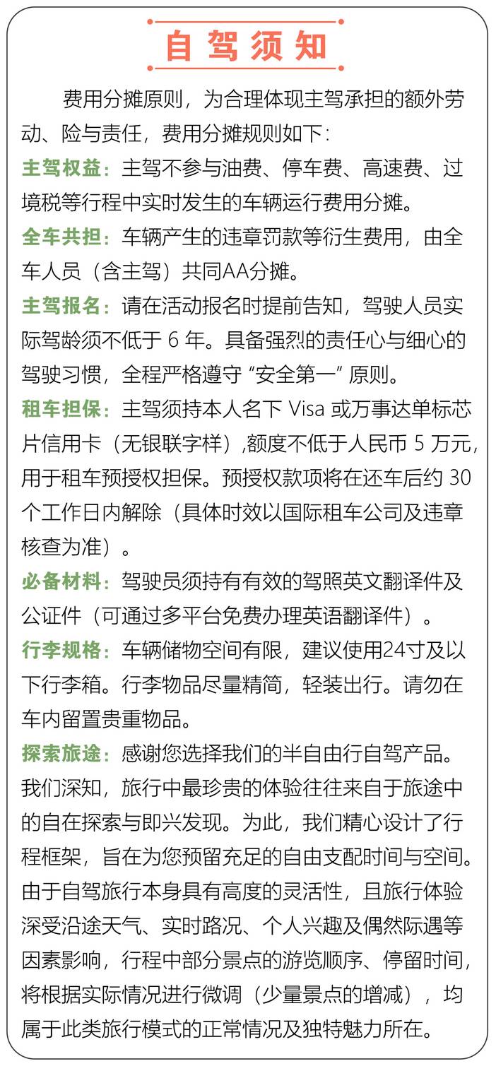 1、丹麦、瑞典、挪威、芬兰、爱沙尼亚为包车出行,中文司机兼导游,冰岛段为自驾出行,6年以上驾龄老司机可申请自驾开车,请于9月1日之前与我们申请。