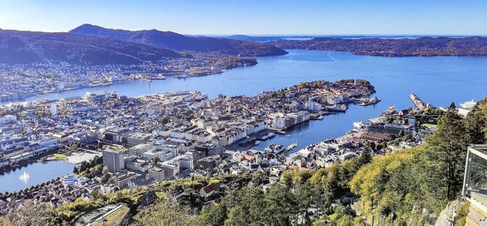 搭乘弗罗伊索道俯瞰卑尔根的美景