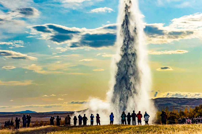 盖锡尔间歇喷泉定时喷发,蔚为壮观