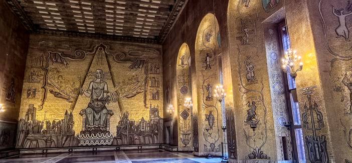 斯德尔摩市政厅以其独特的红砖建筑和金色大厅闻名