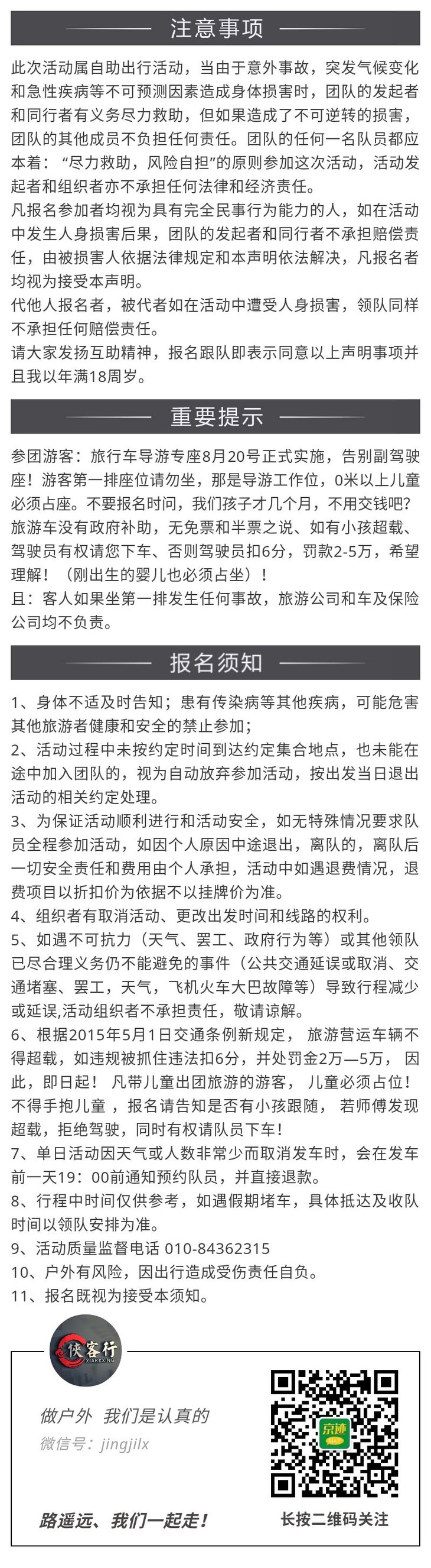 3)其它:本活动属于半自助游户外活动,领队安排行程不含导游讲解,费用包含以外的自主费用自理,不含税费。