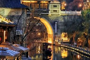 司马小烧酒坊-永顺染坊-剪纸店-皮影戏馆-日月岛广场-震远镖局-八旗会馆-鸳鸯游船码头(可顺着湖边往回走,也可乘船游览)-英华书院-年画坊-风筝文化坊-月老庙-喊泉-小吃广场 - 雁归游船码头。