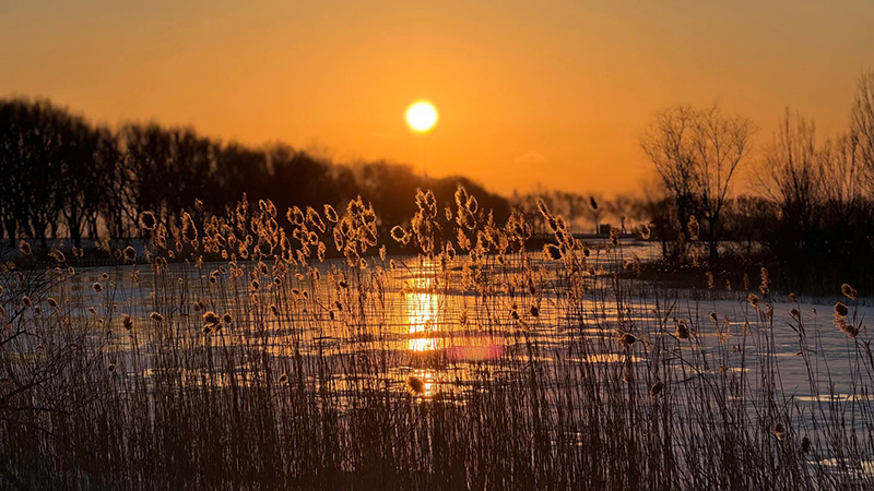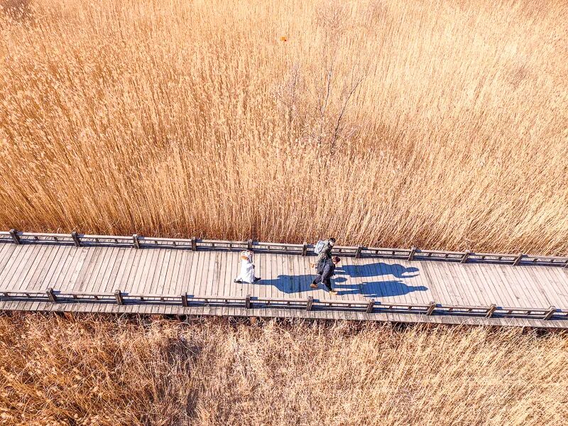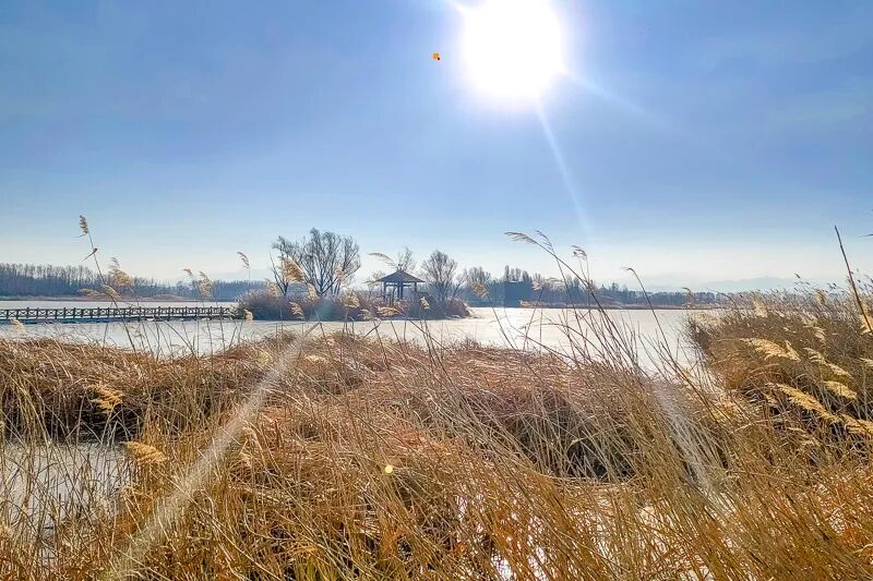 - 13:00|往往野鸭湖湿地公园后,自由活动。徒步环湖全程约6公里,不紧不慢时间正好;有湖中木栈道,穿梭在大片的芦苇荡中央;也有林荫小路,随时休憩;湖面半冰半水,靠近岸边是晶莹剔透的薄冰,湖心则是缓缓流动的碧水,冰水交界处纹理精巧。周边的芦苇荡呈现出金黄、赭石等暖色调,苇穗随风起伏,与远处黛青色的山峦相映成趣。初雪过后,芦花覆雪,木栈道也被染成白色,踩上去发出咯吱声。此时,灰鹤、豆雁等候鸟在此栖息、觅食,为冬日的湿地增添了生机。