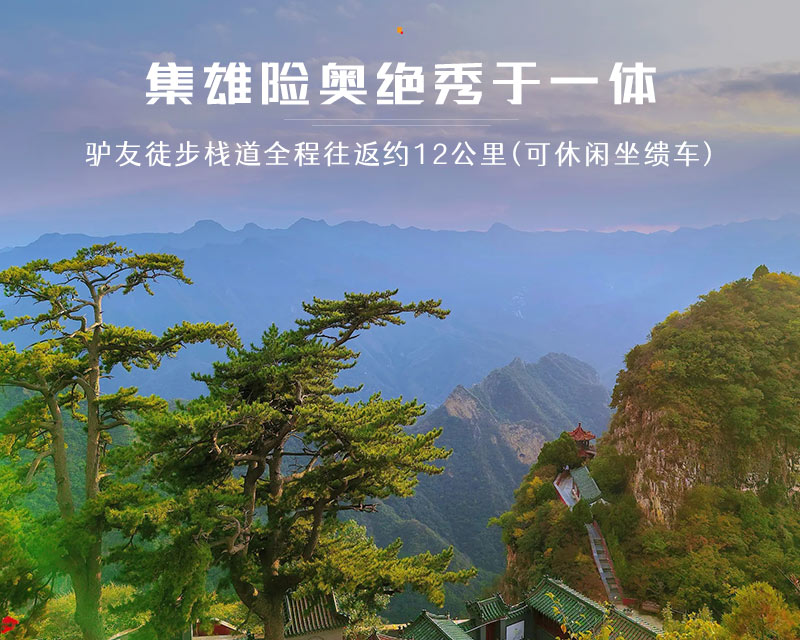 山势陡峭,巍峨俊秀,山下幽谷深邃,溪流潺潺;山涧峰高崖陡,绝壁森森;山上流云雾海,变化无穷;丛林茂盛,古树参天,庙观亭阁掩映于浓荫之间,而且还集中展示了雄、险、奥、绝、秀的特点,素有京西小五岳之美誉。