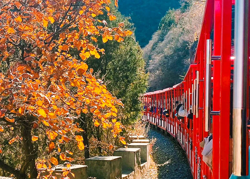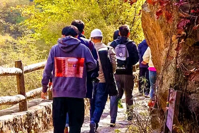 - 10:00|到达双龙峡景区后,开始自行结伴游览登山赏秋,景区全长15公里,先乘小火车进入景区,然后穿行溪流峡谷,赏高山翠谷,红叶跌宕起伏,阅峰峦巍峨之美;一路溪水瀑布相伴,悠然自得,中午适时红叶间午餐。