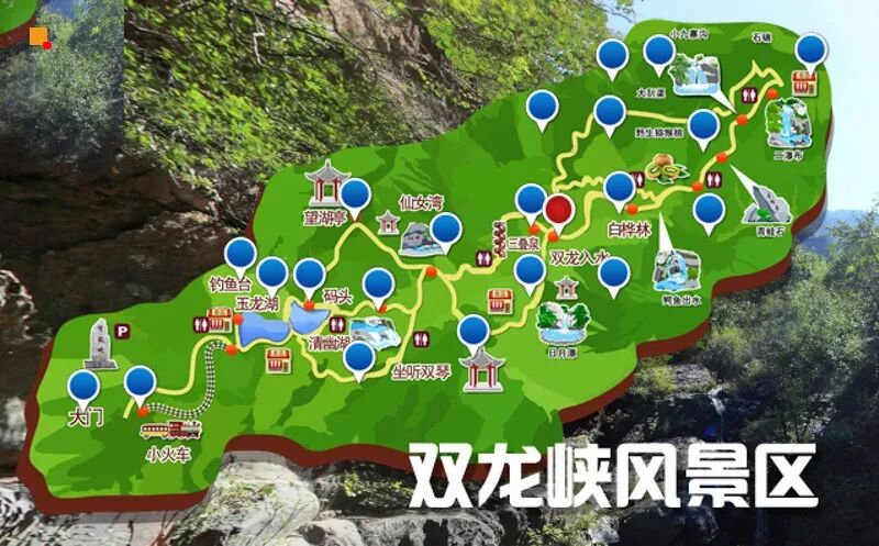 双龙峡景区主体形象概括为十里溪流、百潭瀑布、千亩杏园、万倾林海、青山翠谷、世外桃源、苍山如海。