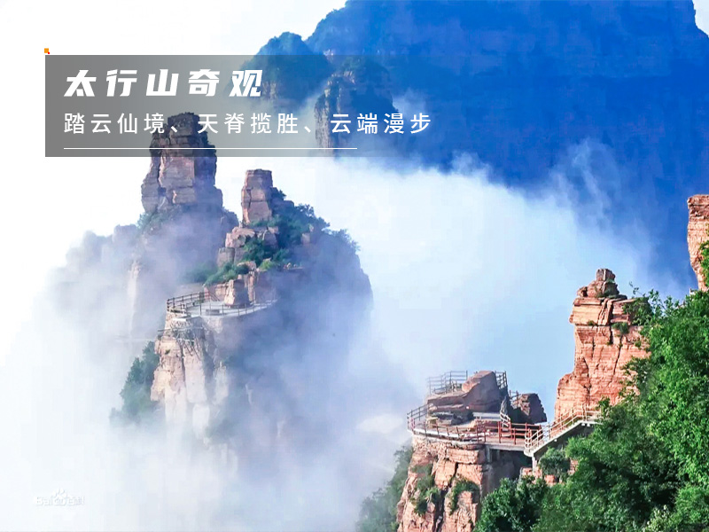 东太行高山栈道天境瀑布北高峰全景游:游览路线:游客中心-索道观光-南天门-四方桥-悬崖电梯-中天门-云际栈道-高山天瀑-天镜湖-天脊长城-九重天-北高峰-太行一柱-云端栈道-红象台-小羊山-索道下山-游客中心,我们深度体验媲美美国科罗拉多大峡谷的太行丹霞地貌风光,在云际栈道感受虚无缥缈的云海仙境,在云端漫步,逍遥自在旅行,心旷神怡。还可到国内最震撼最浪漫的东太行高山天瀑前“山盟海誓”,与TA或TA们鉴情,相伴一生,漫步云端!