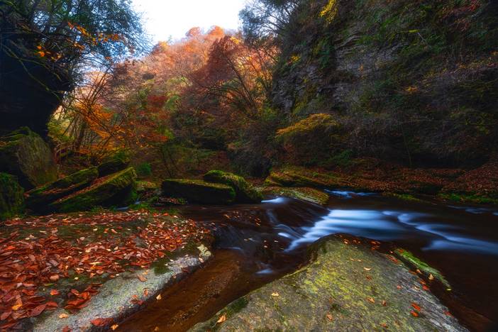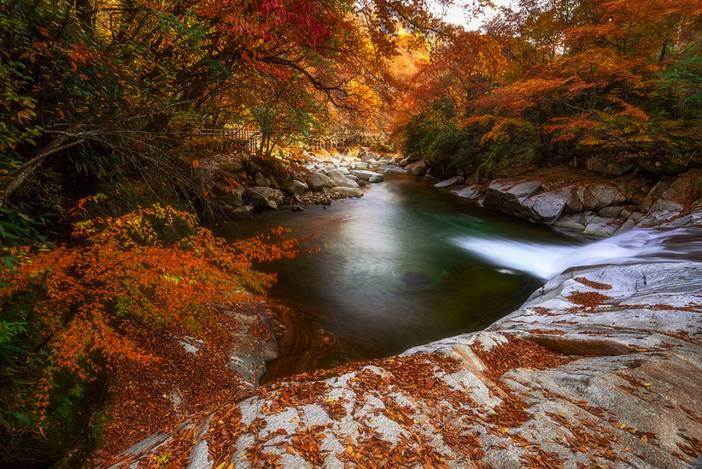 飞流直下的【枫林瀑布】和色彩斑斓的【红尘峡】是极好的摄影地,黎坪红叶将山林间调色成最天然的画廊,色调柔和舒适。【剑峡】顾名思义,像一把宝剑劈开山谷,使得水流急速落下,溅起的水花清凉浸润,大珠小珠落玉盘。