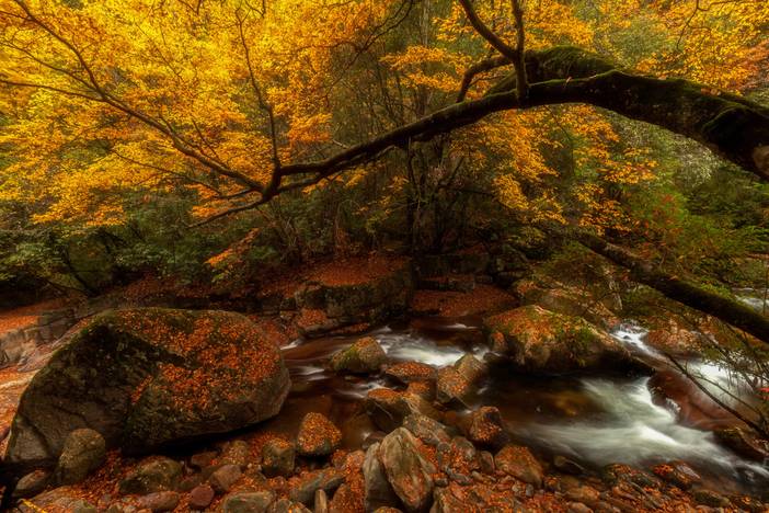 随后再来到【大小兰沟】,喜欢拍照的小伙伴注意了,这里青石苔藓和飘落其上的红叶,构成了秋天最美的图卷。溪水曲折蜿蜒缓缓流淌,水流不大适合下沟游玩,尽情玩耍一番,内心烦闷早已一扫而空。