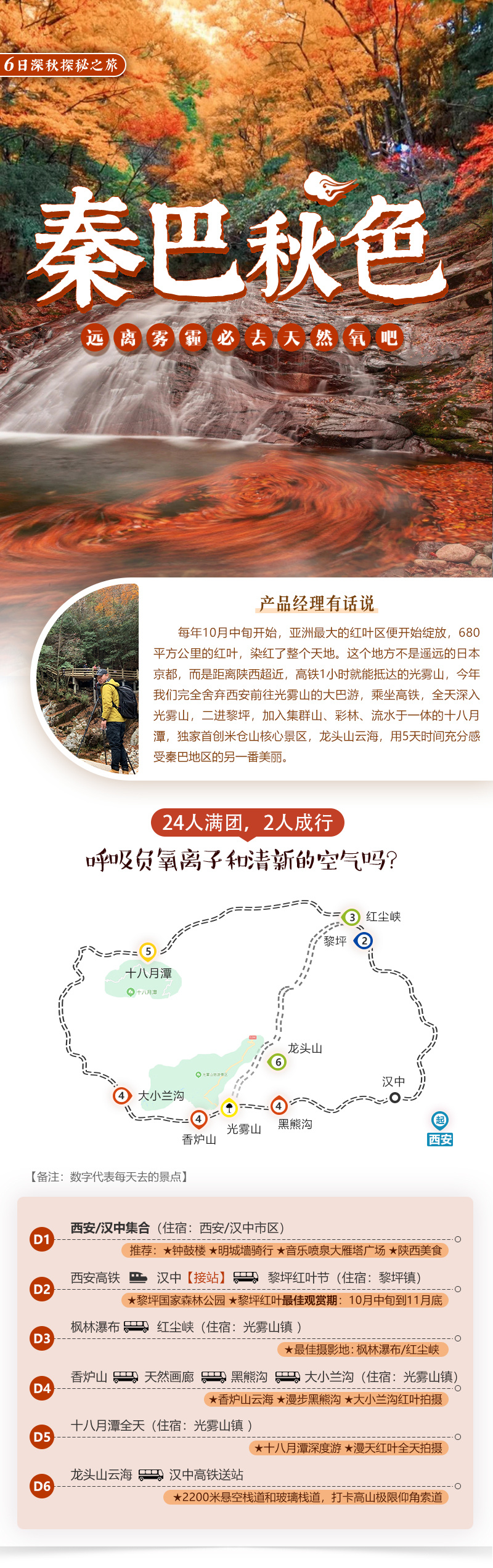 成团【聚享 •秋醉红叶-相约秦巴】10-11月光雾山-黎坪红叶节-龙头山云海-十八月潭6日深秋探秘之旅! [复制链接]