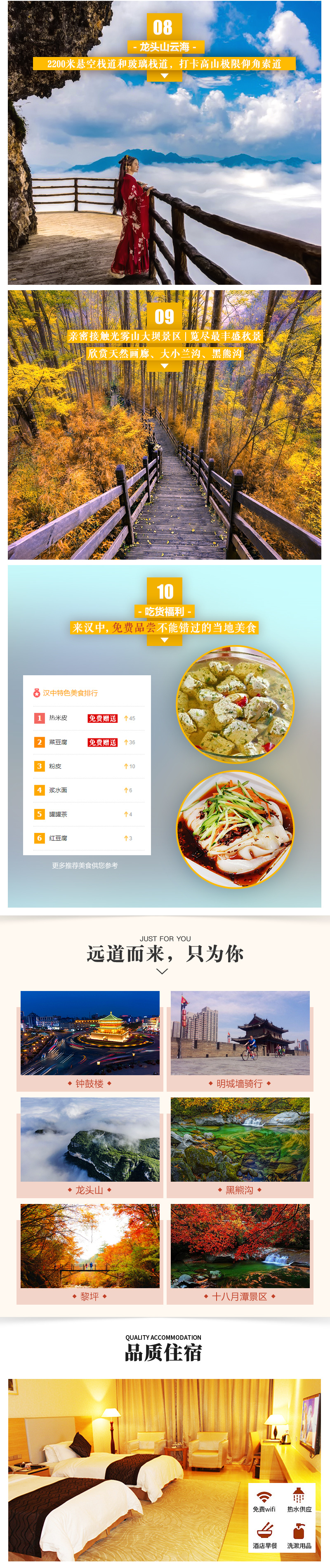 【住宿】西安携程四钻/汉中准4酒店标间1晚,黎坪假日酒店标间1晚,光雾山镇酒店标间3晚;