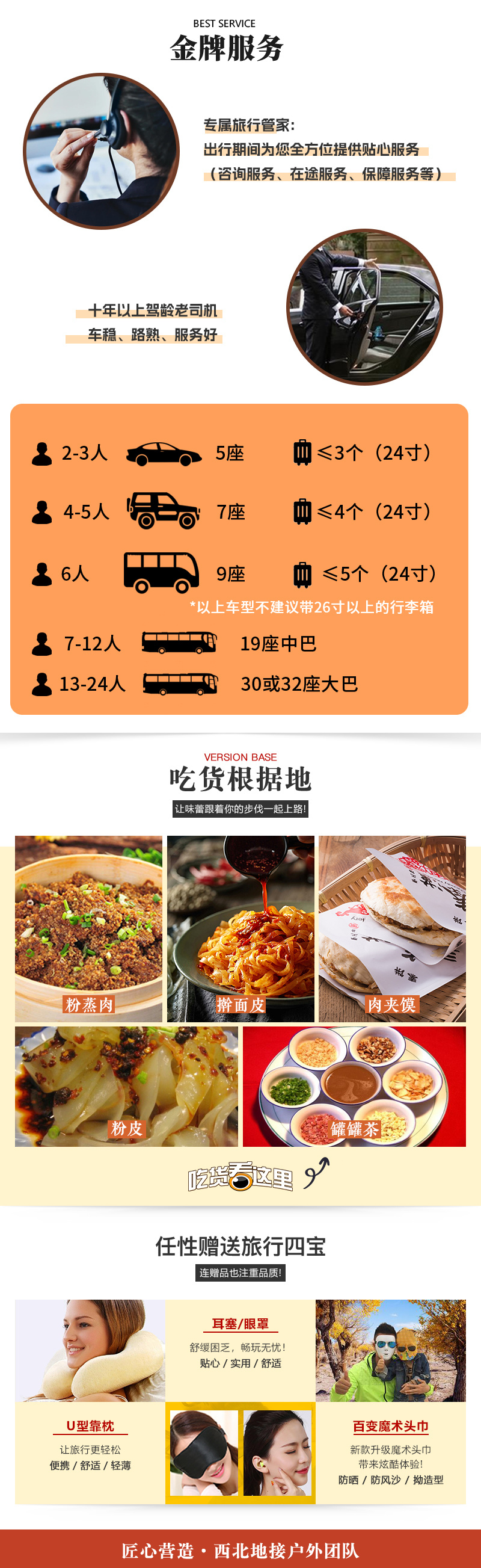【领队】用车为小车时(10人及以下,含10人)司机兼领队(司机仅提供简单介绍、向导服务、买票、办理入住,无法提供专业讲解,小车全程配旅行管家服务);用车为大车时(10人以上)安排优秀摄影师全程为您服务;