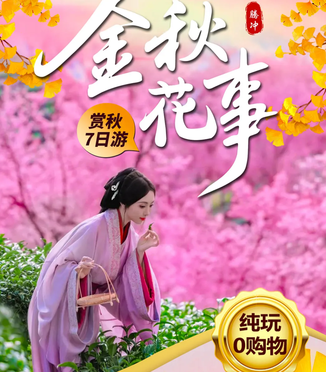 【应季策划】:特别策划涵盖最绚丽的粉色冬樱花+腾冲银杏王国江东银杏+热带雨林的经典小环线。在最美季带你去看最美的风景。