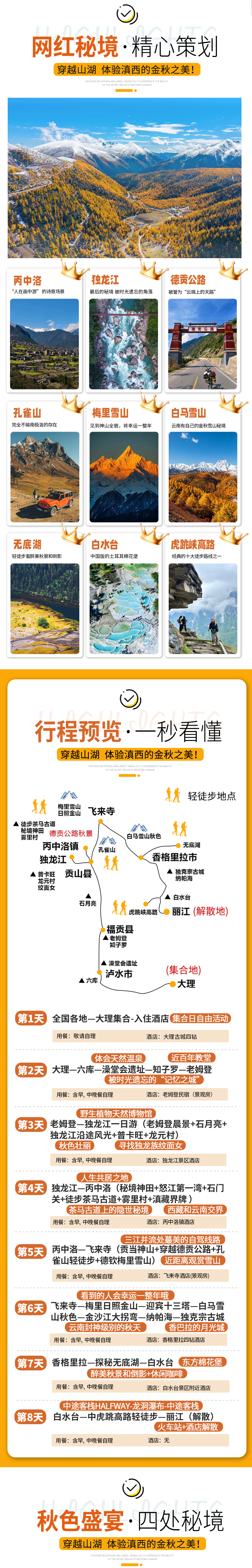 共8期(精选秋色最佳时间),每期2人成行,大理集合,丽江解散。