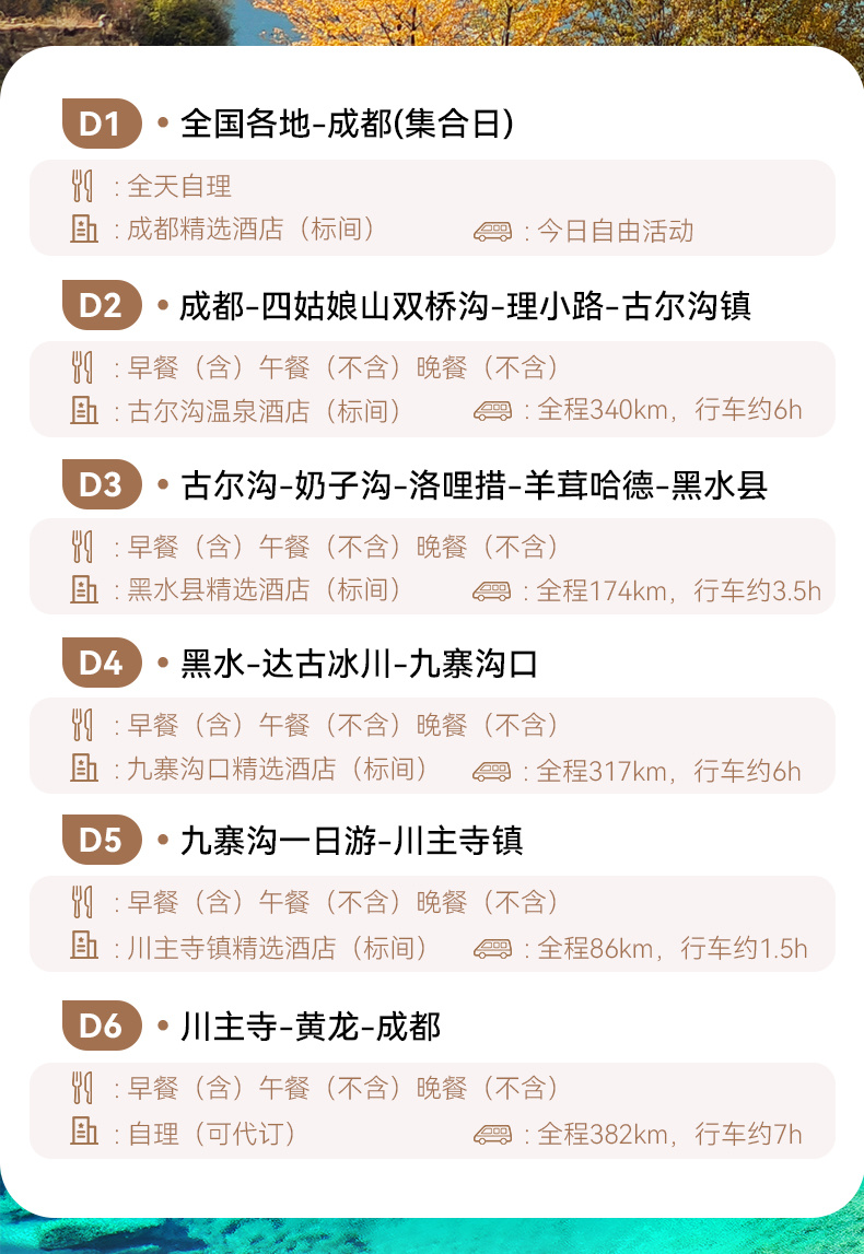 第六天:川主寺-成都,完团,无费用退