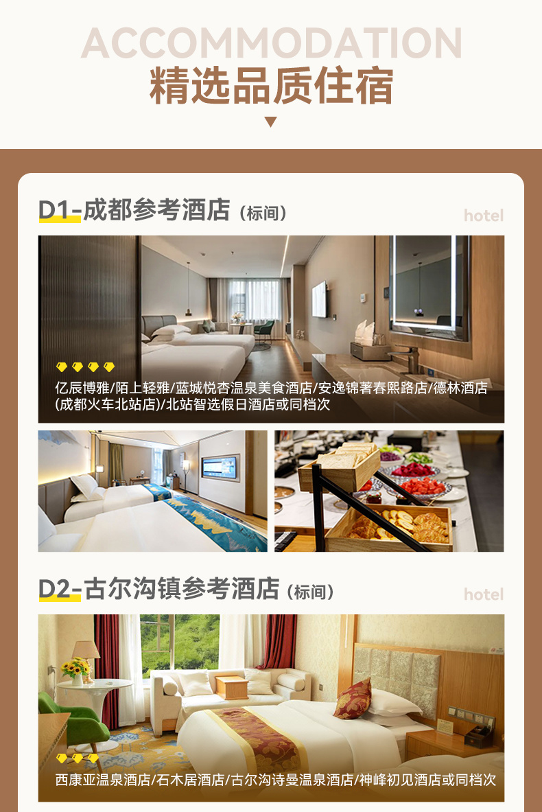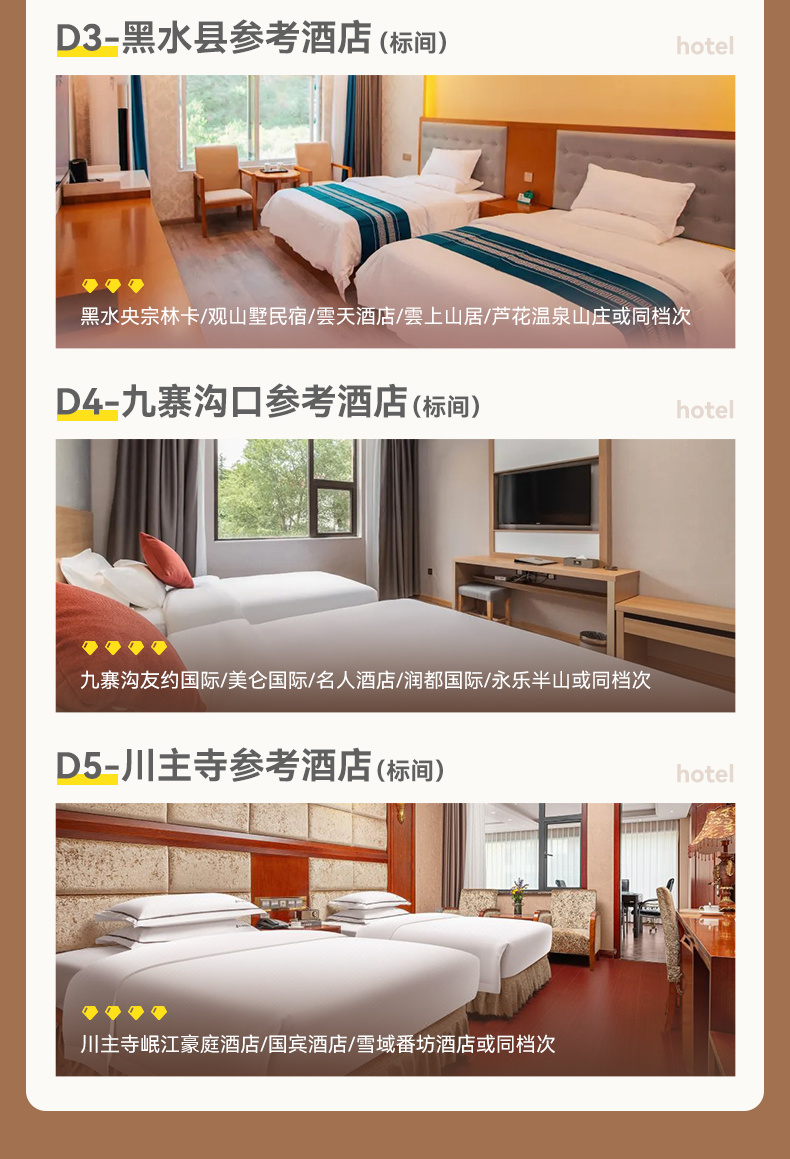▷ 住宿:九寨沟口精选酒店(标间)