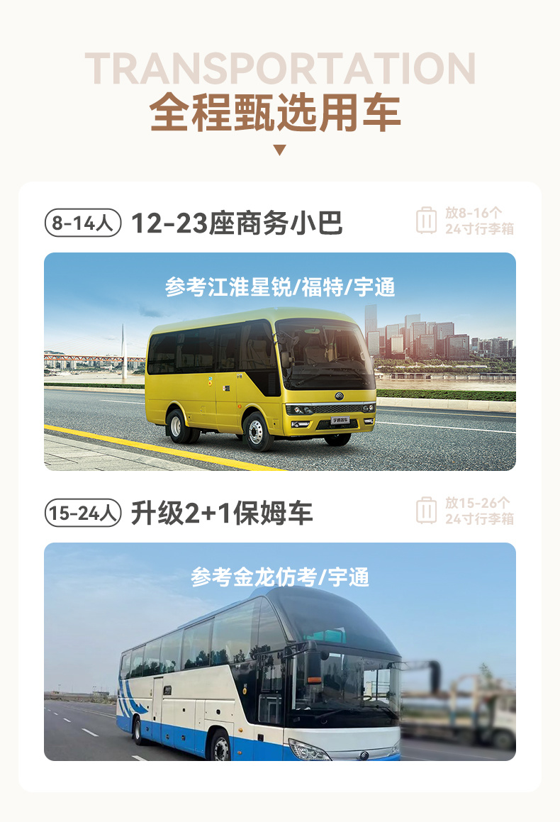 1,如需要接机或者接站,请于出发前2天给到客服人员具体的航班班次信息,不接受临时安排,无航班号则默认为自动放弃接机/接站服务。