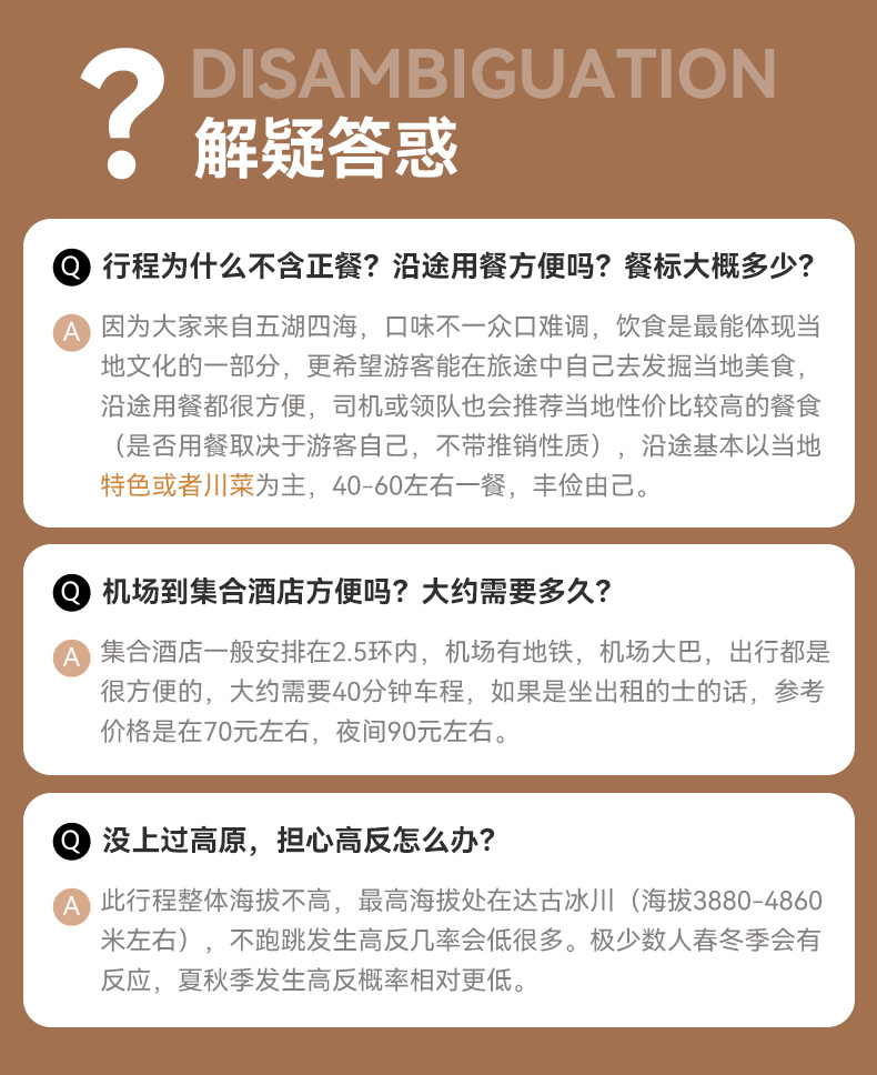 4、天府机场建议订23:30之后航班。由于川西北地区路况较差,山道狭窄,有可能因为堵车、交通管制等情况而发生延误。请大家尽量预订次日返程的航班或车次。