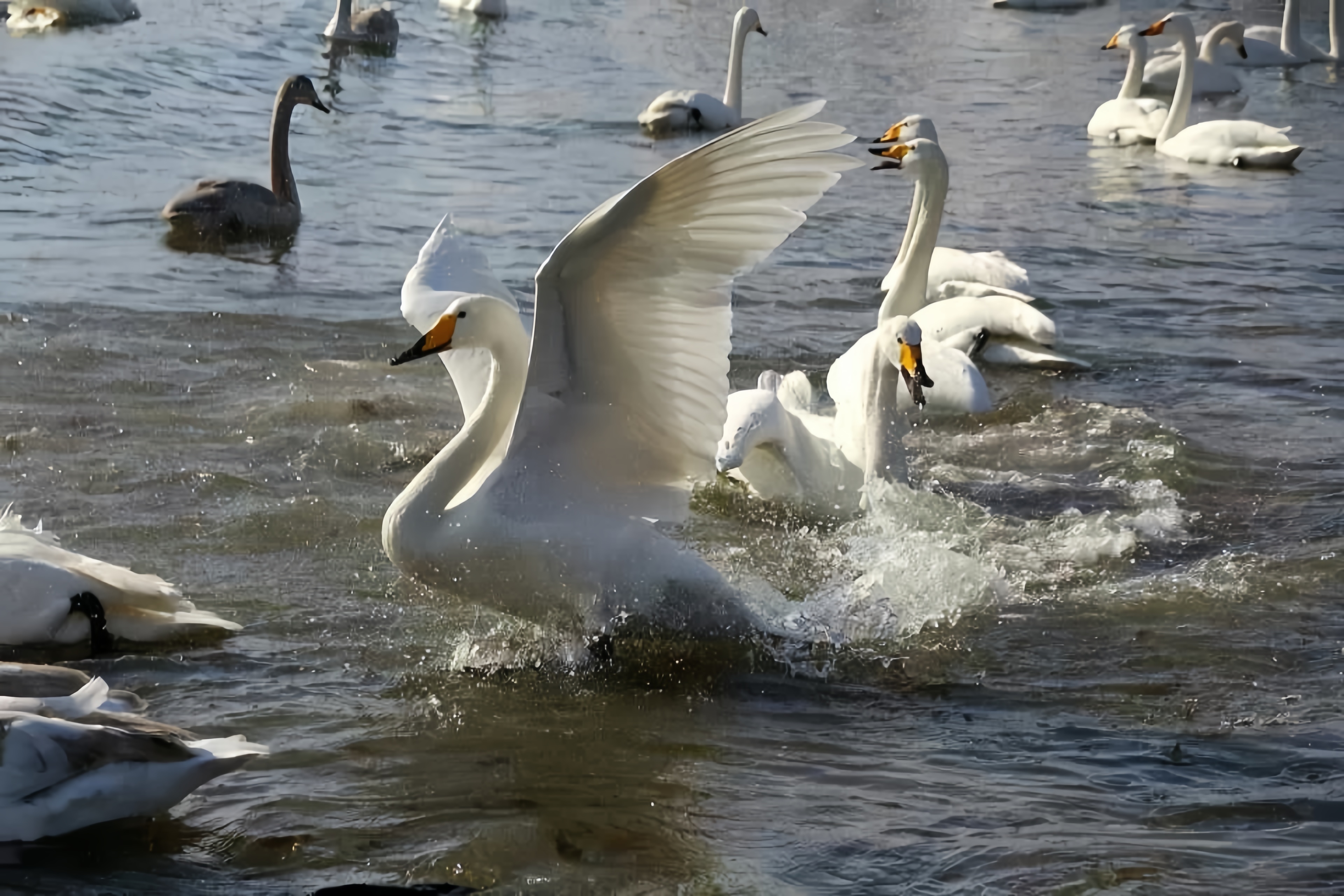 这里也是中国最大的天鹅越冬栖息地、世界四大天鹅湖之一,被誉为“中国大天鹅之乡”。