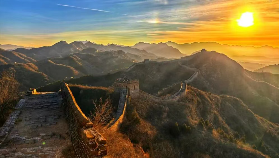 07:20|观日出;当第一缕微光刺破燕山的晨雾,金山岭长城便从沉睡中苏醒,用砖石的脉络,承接天地间最壮丽的开篇。凌晨的风带着山间的清冽,漫过垛口与敌楼,你无需追赶,只需站在城墙之上,看东方的天际从墨蓝渐染成橘粉,再被一轮红日撕开金色的帷幕。阳光爬上烽火台的棱角,将斑驳的城砖镀上暖光,千年的沧桑在这一刻褪去厚重,只剩光影流动间的震撼与温柔。